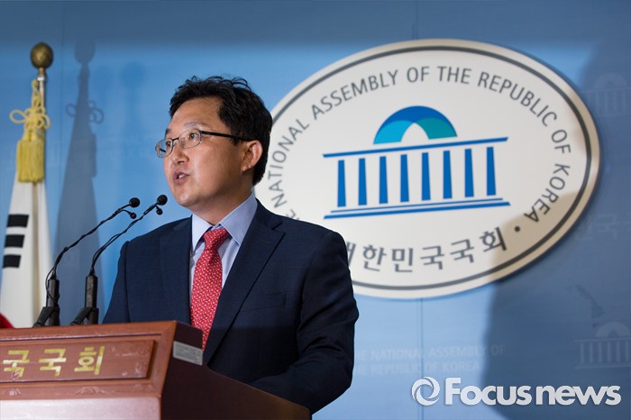 (서울=포커스뉴스) 김용태 새누리당 의원이 27일 오전 서울 여의도 국회에서 오는 8월 9일에 열리는 차기 전당대회 당 대표 경선 출마를 선언 하고 있다.