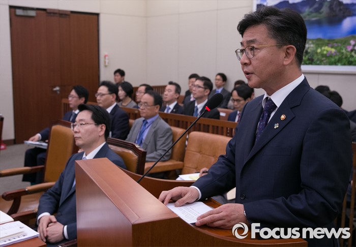 (서울=포커스뉴스) 27일 오전 서울 여의도 국회에서 열린 외교통일위원회 전체회의에 참석한 홍용표 통일부 장관이 업무보고를 하고 있다.