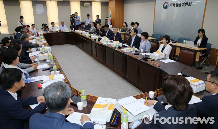 (세종=포커스뉴스) 박준성 최저임금위원회 위원장이 27일 오후 세종시 정부세종청사 고용노동부 전원회의실에서 열린 최저임금위원회 제6차 전원회의를 주재하고 있다.