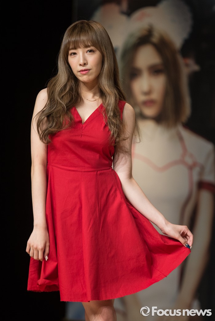 (서울=포커스뉴스) 27일 오후 서울 강남구 일지아트홀에서 열린 걸그룹 브레이브 걸스의 세번째 미니앨범 'HIGH HEELS'발표 쇼케이스에 참석한 멤버 유진이 포토타임을 갖고 있다.