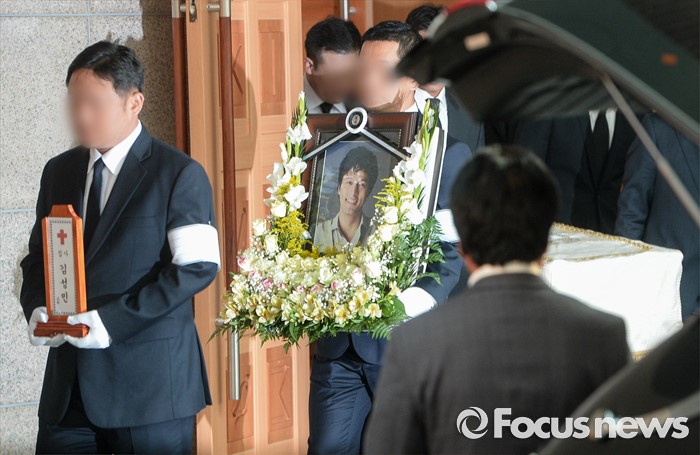 (서울=포커스뉴스) 뇌사 판정을 받고 장기를 기증한 뒤 사망한 배우 故김성민의 발인식이 28일 오전 서울 서초구 가톨릭대학교 성모병원 장례식장에 엄수되고 있다.
