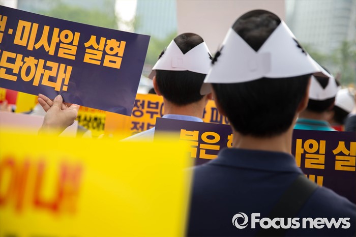 (서울=포커스뉴스) 28일 오전 서울 종로구 정부서울청사 앞에서 개성공단 입주기업 비대위 관계자들이 방북 승인을 촉구하는 집회를 하고 있다.