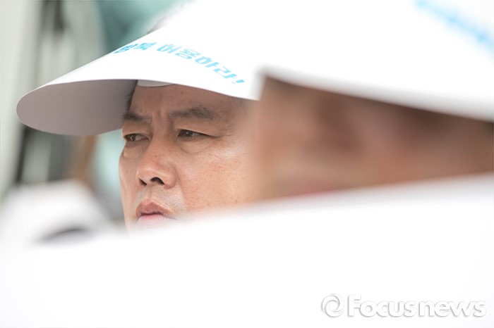 (서울=포커스뉴스) 28일 오전 서울 종로구 정부서울청사 앞에서 개성공단 입주기업 비대위 관계자들이 방북 승인을 촉구하는 집회를 하고 있다.