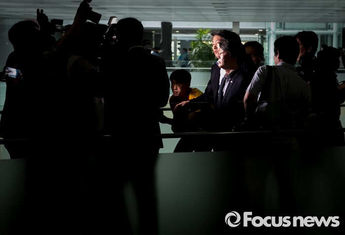 (서울=포커스뉴스) 28일 오전 서울 여의도 국회 의원회관에서 왕주현 전 사무부총장 구속 등 리베이트 수수 의혹 관련 비공개 국민의당 의원총회를 마친 안철수 상임공동대표가 취재진 질문을 받으며 이동하고 있다.