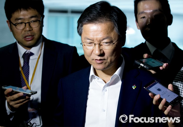 (서울=포커스뉴스) 28일 오전 서울 여의도 국회 의원회관에서 왕주현 전 사무부총장 구속 등 리베이트 수수 의혹 관련 비공개 국민의당 의원총회를 마친 천정배 공동대표가 취재진 질문을 받으며 이동하고 있다.