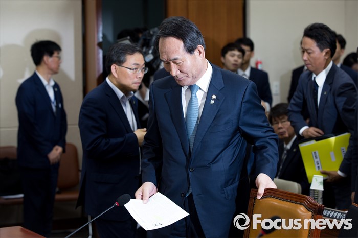 (서울=포커스뉴스) 박승춘 국가보훈처장이 28일 오전 서울 여의도 국회에서 열린 정무위원회에 참석하기 위해 회의실로 들어서고 있다.