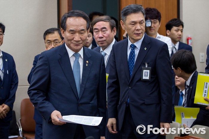 | △ 정무위 참석한 박승춘 처장-최완근 차장 |