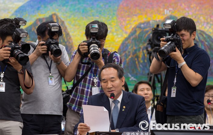 (서울=포커스뉴스) 박승춘 국가보훈처장이 28일 오전 서울 여의도 국회에서 열린 정무위원회에 참석해 질의응답 하고 있다.