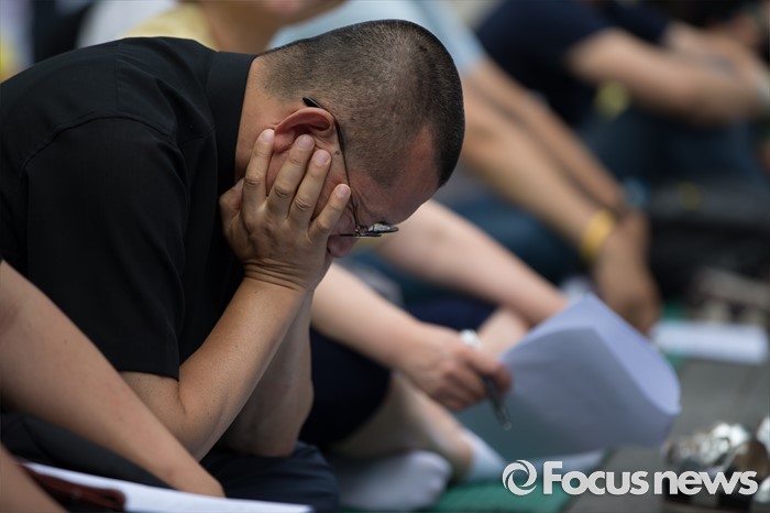 (서울=포커스뉴스) 28일 오전 서울 종로구 정부서울청사 인근 공원에서 열린4.16가족협의회·4.16연대 '세월호 특조위 강제해산에 대응하는 각계 긴급 회의'에 가족협의회 및 시민들이 참석하고 있다.
