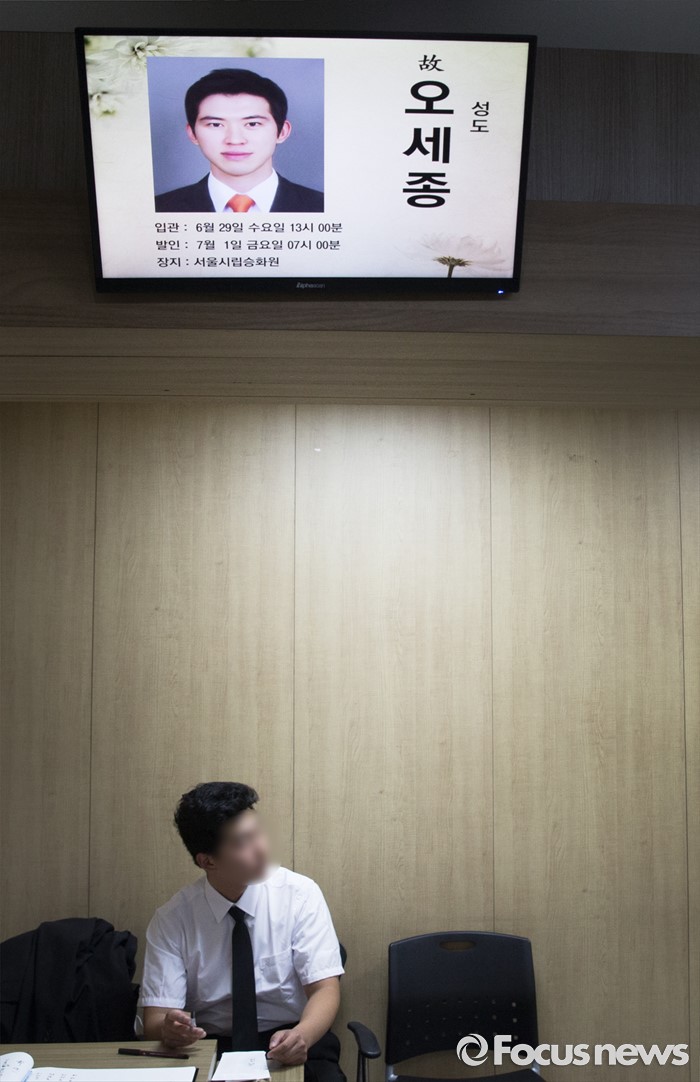 (서울=포커스뉴스) 28일 오후 서울 성동구 한양대학교병원 장례식장에 마련된 故 오세종(34) 전 쇼트트랙 국가대표 선수의 빈소.