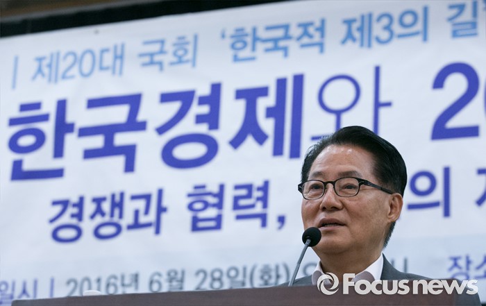 (서울=포커스뉴스) 28일 오전 서울 여의도 국회 의원회관에서 열린 '한국적 제3의 길' 창립 기념 초청 강연, '한국경제와 20대 국회가 가야할 길'에 참석한 박지원 국민의당 원내대표가 축사를 하고 있다.