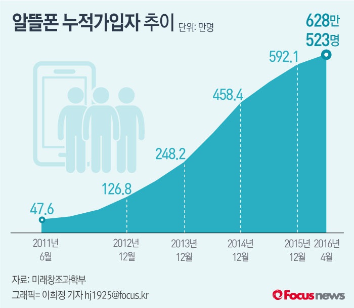 (서울=포커스뉴스) 미래창조과학부에 따르면 2016년 4월 기준 알뜰폰 누적가입자 수는 628만 523명으로 집계됐다.