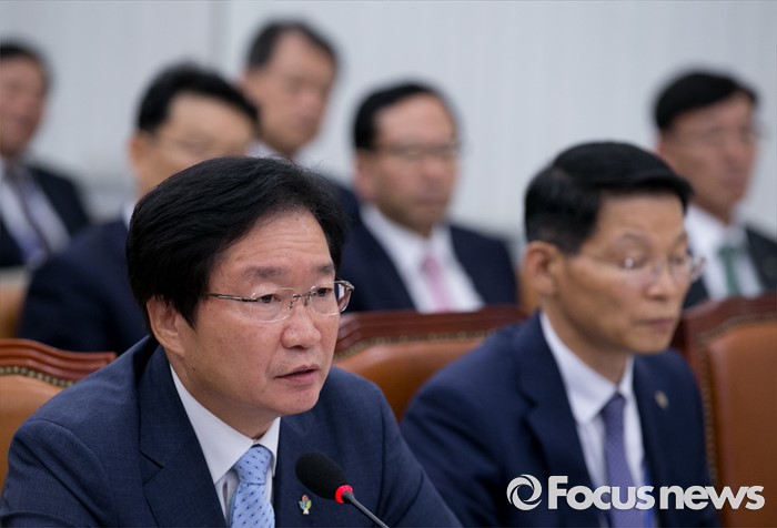 (서울=포커스뉴스) 28일 오후 서울 여의도 국회에서 열린 농림축산식품해양수산위원회 전체회의에 참석한 김영석 해양수산부 장관이 의원들의 질의에 답하고 있다.