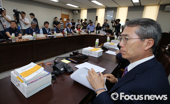 (세종=포커스뉴스) 박준성 최저임금위원회 위원장이 28일 오후 세종시 정부세종청사 고용노동부 최저임금위원회 전원히의실에서 열린 최저임금위원회 제7차 전원회의에서 자료를 살피고 있다.