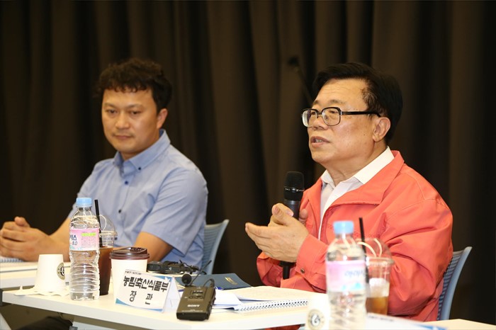 (춘천=포커스뉴스) 국민공감과 소통을 위해 현장을 찾은 이동필 농림축산식품부 장관이 28일 강원도 춘천시 강원창조경제혁신센터에서 열린 농식품 벤처 창업기업 간담회를 주재하고 있다. <사진제공=농림축산식품부>
