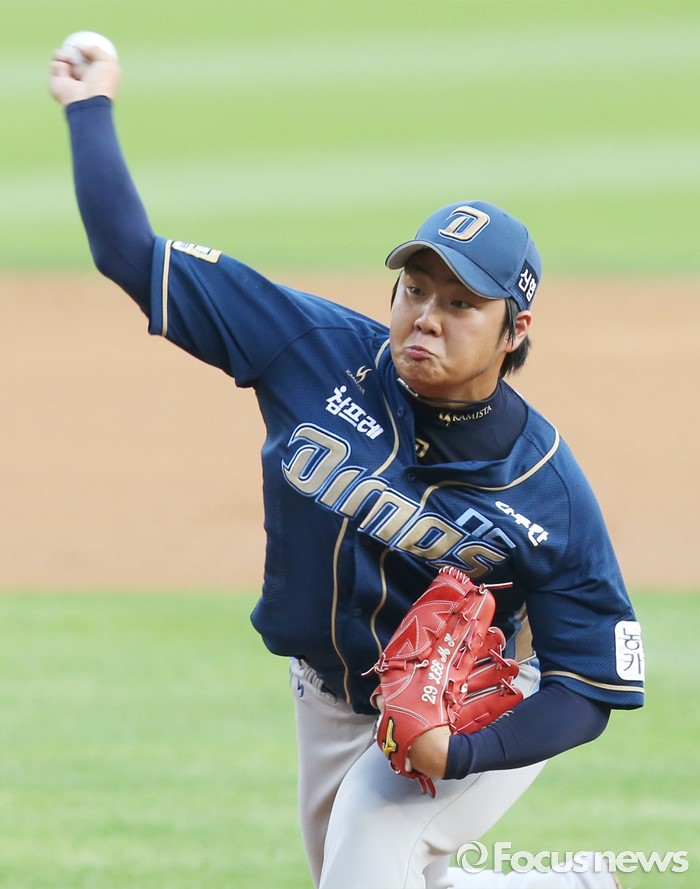 (서울=포커스뉴스) 28일 서울 잠실구장에서 열린 2016 프로야구 NC-두산 경기에서 1회말 NC 선발투수 이민호가 투구하고 있다.