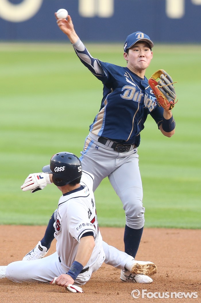 | △ 더블플레이 노리는 NC 2루수 박민우 |