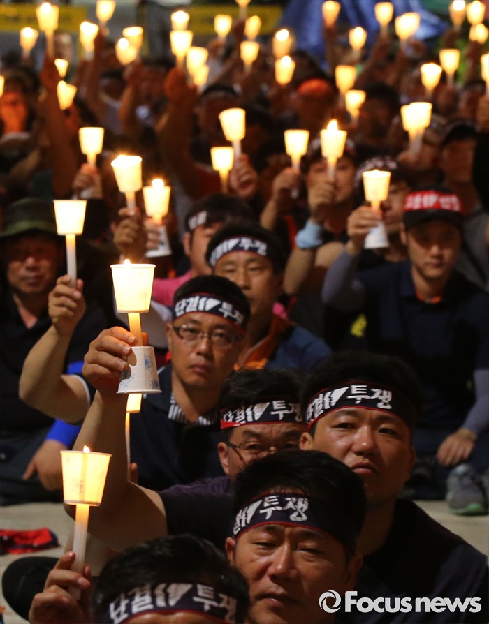 (세종=포커스뉴스) NH 농협중앙회노동조합원들이 28일 오후 세종시 정부세종청사 농림축산식품부 앞에서 농협법 개정 반대하는 1박 2일 노숙집회에서 촛불을 들고 있다.
