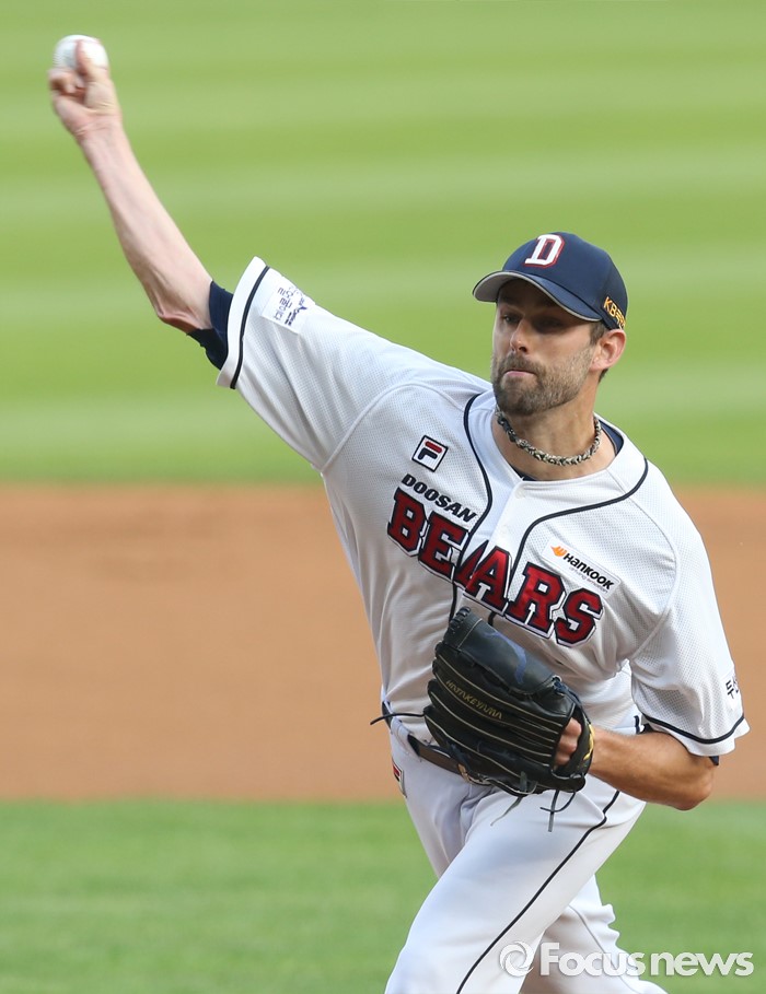 (서울=포커스뉴스) 28일 서울 잠실구장에서 열린 2016 프로야구 NC-두산 경기에서 1회초 두산 선발투수 니퍼트가 투구하고 있다.