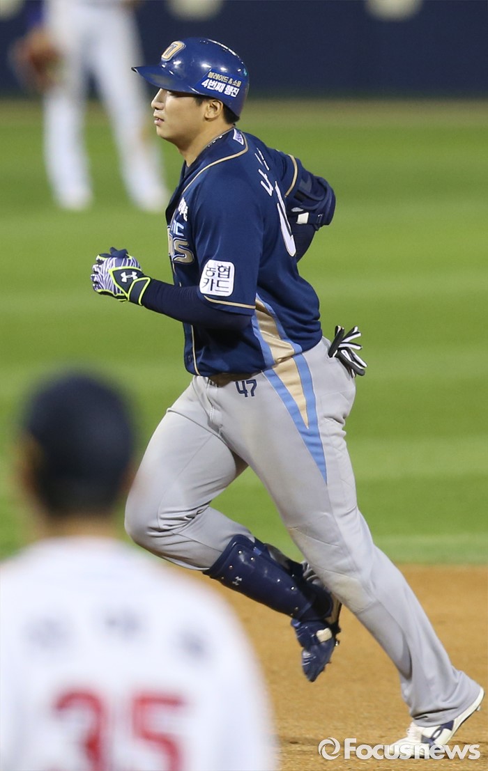 (서울=포커스뉴스) 28일 서울 잠실구장에서 열린 2016 프로야구 NC-두산 경기 7회초 2사후 NC 나성범이 우중간 솔로 홈런을 치고 베이스를 돌고 있다.