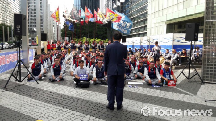 (서울=포커스뉴스) 파업 찬반투표 가결로 파업권을 획득한 삼성중공업 노동자협의회가 부실경영 책임자 처벌과 구조조정 중단을 촉구하며 상경투쟁을 벌였다.