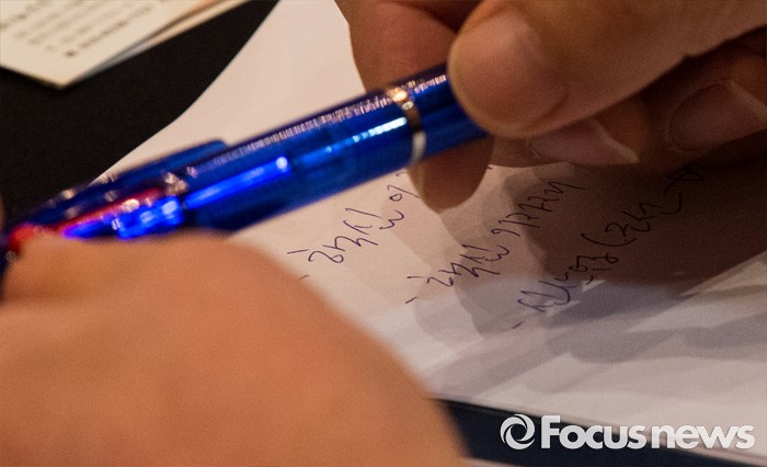 (서울=포커스뉴스) 29일 오전 서울 강남구 그랜드 인터콘티넨탈 호텔에서 열린 산업부 주최 조선업계 CEO ·전문가 간담회에 참석한 정성립 대우조선해양 사장의 메모에 '핵심기자재, 신산업'이 적혀 있다.