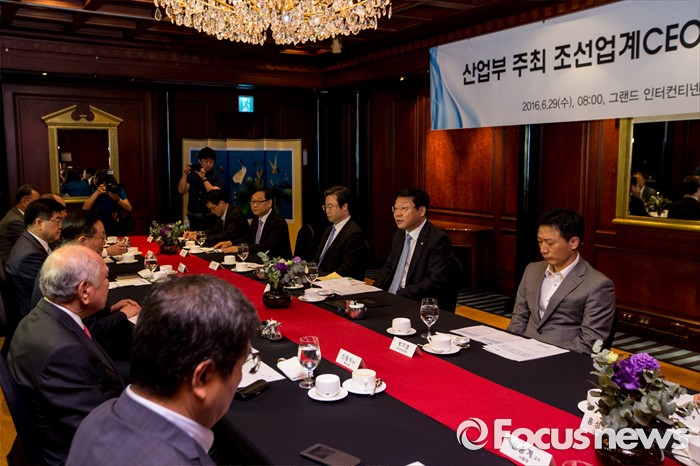 (서울=포커스뉴스) 29일 오전 서울 강남구 그랜드 인터콘티넨탈 호텔에서 열린 산업부 주최 조선업계 CEO ·전문가 간담회에 참석한 주형환 산업통상자원부 장관이 발언하고 있다.