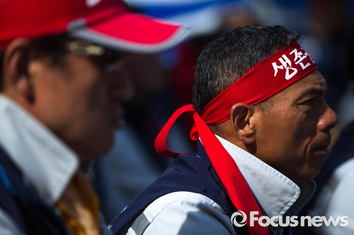 | △ 서울 상경해 삼성 앞에 앉은 노동자 |