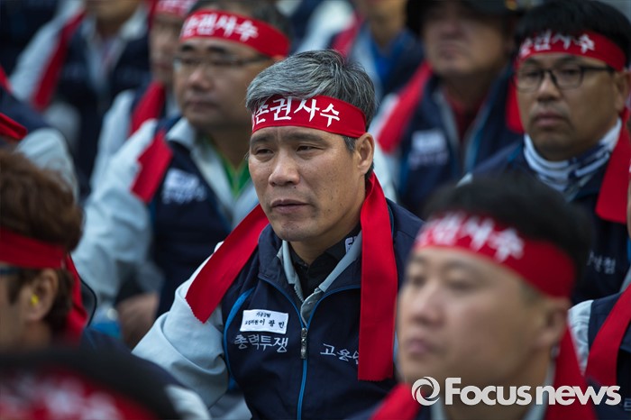 | △ 진지한 표정으로 발언 경청하는 노동자 |