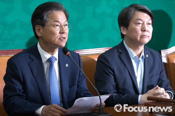 (서울=포커스뉴스) 29일 오전 서울 여의도 국회에서 열린 국민의당 최고위원회의에 참석한 천정배 공동대표가 리베이트 수수 의혹 사건과 관련 입장을 전하고 있다. 오른쪽은 안철수 상임공동대표.