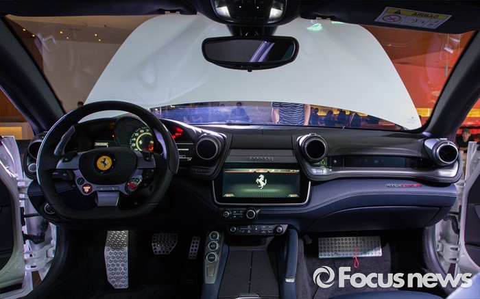 (서울=포커스뉴스) 29일 오전 서울 광진구 W서울 워커힐 호텔에서 이탈리아 스포츠카 브랜드 페라리가 'GTC4 루쏘(GTC4Lusso)'를 선보이고 있다. 사진은 신차의 실내 모습.
