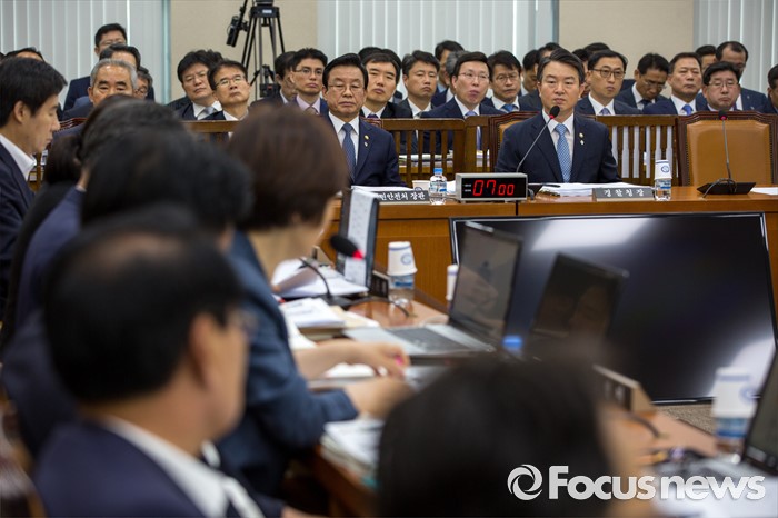 (서울=포커스뉴스) 강신명 경찰청장이 29일 오전 서울 여의도 국회에서 열린 '안전행정위원회 전체회의'에 참석해 더불어민주당 위원들에게 살수차 공개 요구를 받고 있다.