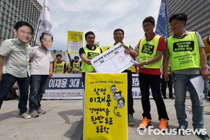 | △ 삼성 이재용 3대 세습 찬반투표 참여 독려 퍼포먼스 |