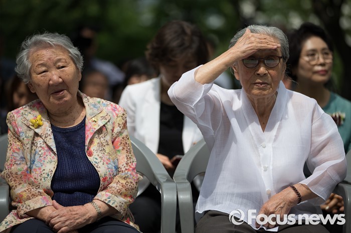 (서울=포커스뉴스) 29일 오전 서울 중구 예장동 옛 통감관저 터에서 열린 일본군 위안부 피해자 추모공원 '기억의 터' 기공식에 길원옥(왼쪽), 김복동 할머니가 참석하고 있다.