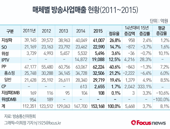 | △ [그래픽] 매체별 방송사업매출 현황(2011~2015) |