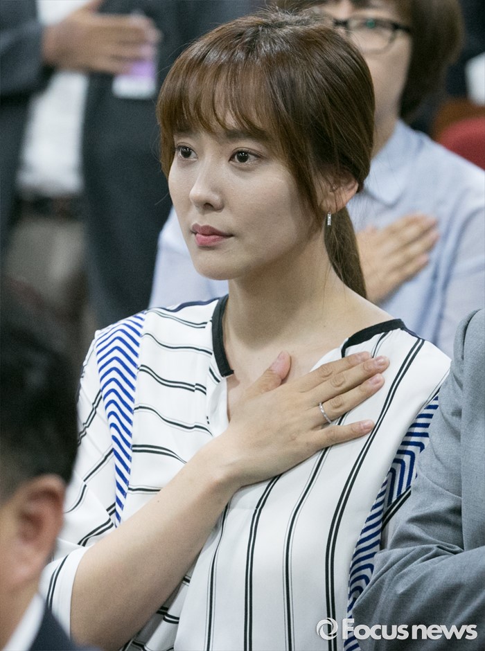(서울=포커스뉴스) 29일 오후 서울 여의도 국회 의원회관에서 열린 동물복지포럼 출범식에 참석한 가수 다나가 국기에 대한 경례를 하고 있다.