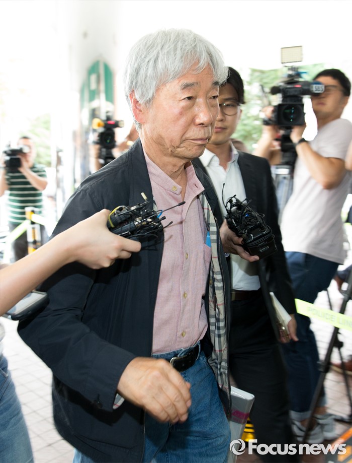 (서울=포커스뉴스) '위작 논란'에 휩싸인 현대미술가 이우환(80) 화백이 29일 오후 서울지방경찰청 지능범죄수사대로 최종 입장을 밝히기 위해 출석하고 있다.