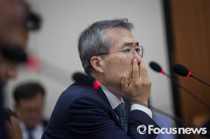 (서울=포커스뉴스) 박준성 최저임금위원회 위원장이 29일 오후 서울 여의도 국회에서 열린 환경노동위원회 전체회의에서 의원들의 질문을 듣고 있다.