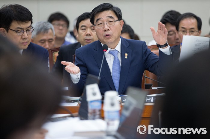 이기권 장관은 또 "성과연봉제 도입에 공공부문이 앞장서야 한다"며 "근로자들 우려하는 요소가 무엇인지 알고 해결책을 찾는 노사 협의 노력이 필요하다"고 밝혔다.(서울=포커스뉴스) 이기권 고용노동부 장관이 29일 오후 서울 여의도 국회에서 열린 환경노동위원회 전체회의에서 의원들 질의에 답하고 있다. 2016.06.29 김흥구 기자