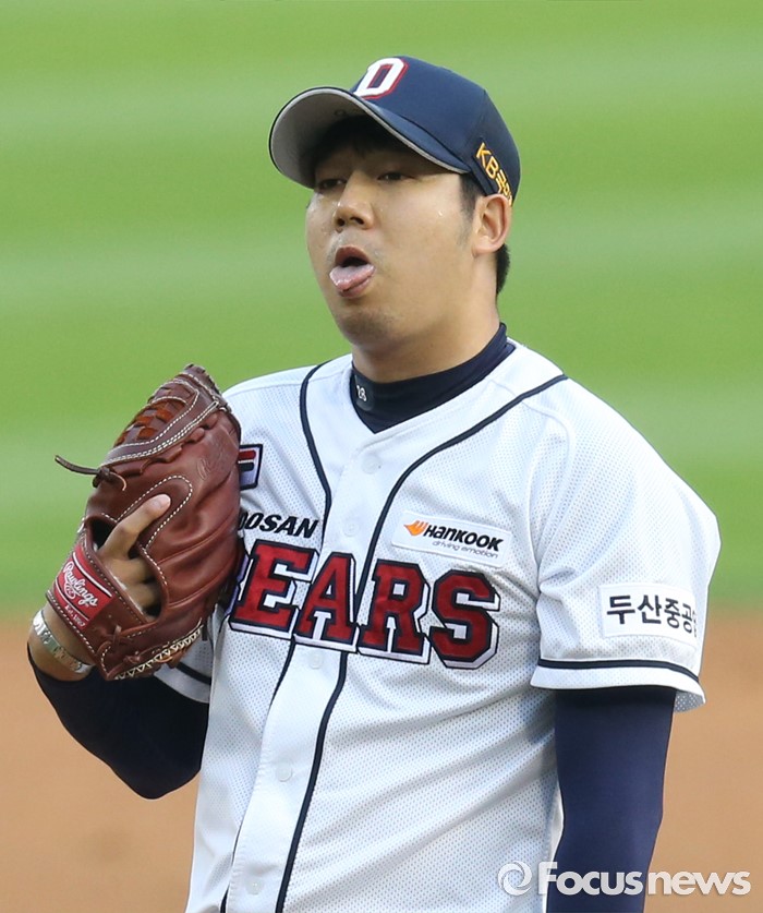 (서울=포커스뉴스) 29일 서울 잠실구장에서 열린 2016 프로야구 NC-두산 경기에서 1회초 두산 선발투수 장원준이 주심의 볼 판정에 아쉬워하고 있다.