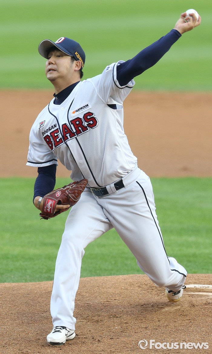 (서울=포커스뉴스) 29일 서울 잠실구장에서 열린 2016 프로야구 NC-두산 경기에서 1회초 두산 선발투수 장원준이 투구하고 있다.