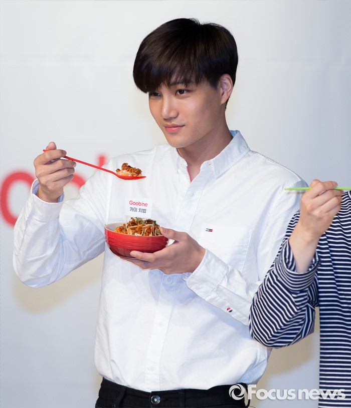 (서울=포커스뉴스) 29일 오후 서울 강남구 일지아트홀에서 열린 '굽네 볼케이노와 함께하는 엑소(EXO) 치밥 쿠킹 팬사인회'에서 카이가 포즈를 취하고 있다.