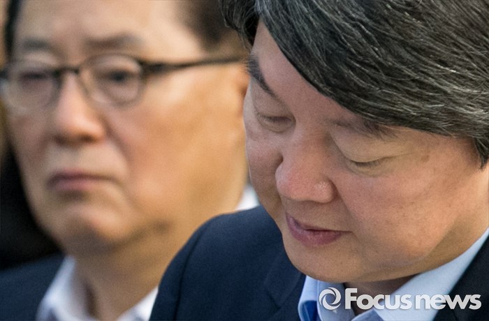 (서울=포커스뉴스) 30일 오전 서울 여의도 국회 의원회관에서 열린 국민의당 22차 집중역량강화 워크숍에 참석한 안철수(오른쪽) 전 대표와 박지원 비대위원장이 의원들의 발표를 듣고 있다.
