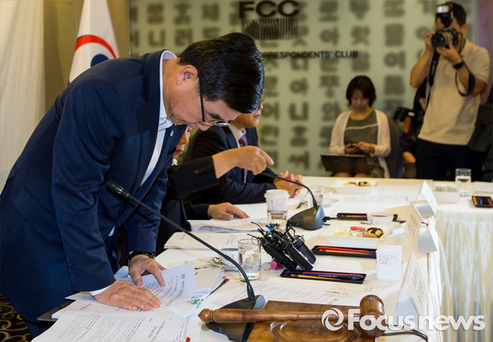 (서울=포커스뉴스) 30일 오전 서울 중구 프레스센터에서 열린 제45차 고용정책심의회에 참석한 이기권 고용노동부 장관이 고개 숙여 인사하고 있다.
