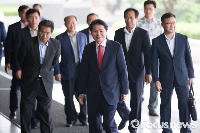 (서울=포커스뉴스) 농협중앙회장 부정선거의혹 관련 김병원 농협 회장이 조사 받기 위해 피의자 신분으로 30일 오전 서울 서초구 서울중앙지방검찰청으로 들어서고 있다.