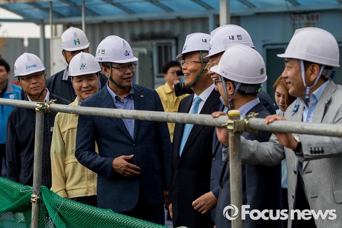 (서울=포커스뉴스) 김종인 더불어민주당 비상대책위 대표가 30일 오전 서울 용산구 한강로 빗물펌프장을 방문해 공사현장을 둘러 보고 있다.