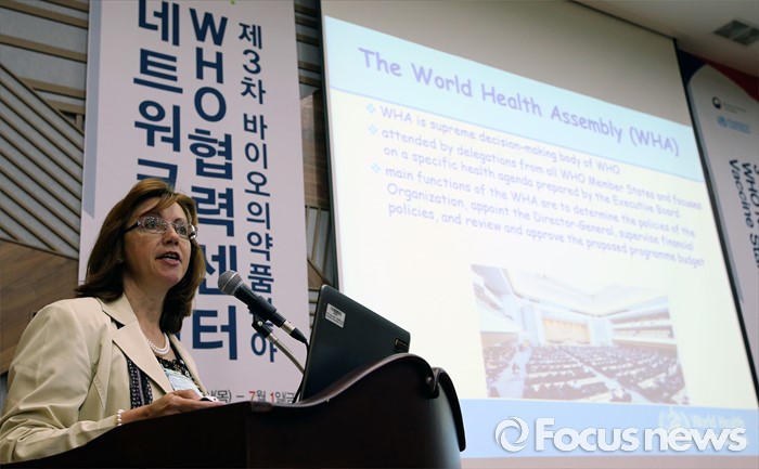 (청주=포커스뉴스) 30일 오전 충북 청주 오송 C&V 센터에서 열린 제3차 바이오의약품분야 WHO협력센터 네트워크 회의에서 이바나 네조빅(WHO Dr. Ivana Knezevic) WHO본부 전문가가 WHO의 나아갈 방향이란 주제로 기조연설을 하고 있다.