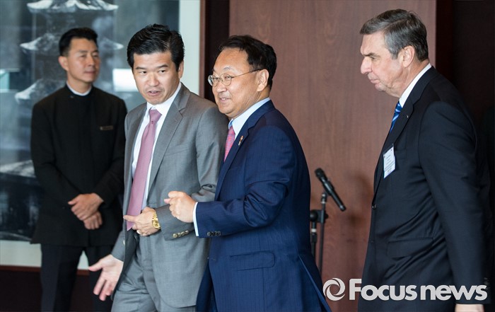 (서울=포커스뉴스) 유일호 경제부총리 겸 기획재정부 장관이 30일 오후 서울 용산구 그랜드하얏트 서울에서 열린 주한미국상공회의소 초청 오찬간담회에 참석하고 있다.