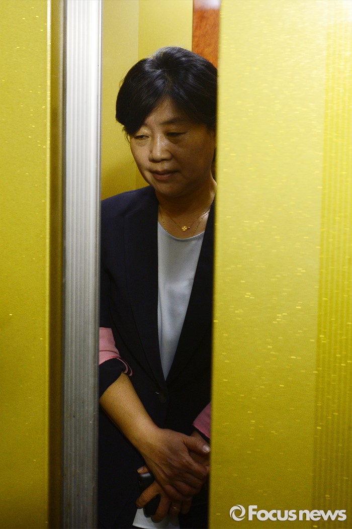(서울=포커스뉴스) 가족채용 논란에 휩싸인 서영교 더불어민주당 의원이 30일 오전 당무감사원 회의에서 논란을 소명하기위해 서울 여의도 더민주 당사로 들어가고 있다.