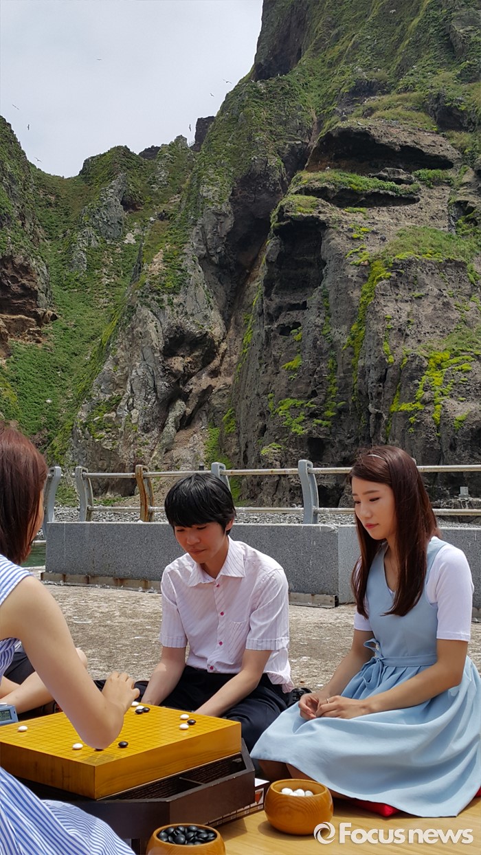(서울=포커스뉴스) 30일 경북 울릉군 독도 선착장에서 이세돌 9단과 여류 바둑 캐스터인 장혜연이 한 팀, 가수 김장훈과 이슬아 4단이 상대편 팀으로 '독도나눔배 특별대국'을 하고 있다. 이날 대국은 이세돌 9단 팀이 202수 만에 불계승을 거뒀다. <사진제공=공연세상>